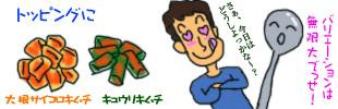 【ピビンバセット】 - - - - - - - - - - - 価格370円 (1.5人前) お店でしか味わえない作り立ての新鮮なナムルだから歯ごたえと風味が違います。是非本格的なナムルの味を知ってください。 |