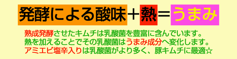 【甘辛白菜キムチ】 - - - - - - - - - - - 価格890円 (切漬け500グラム) あみえびの塩辛を使用した濃厚なキムチながらマイルドな辛味と甘みを併せ持つ人気のお味です。豚キムチならこれに決まりでしょう! |